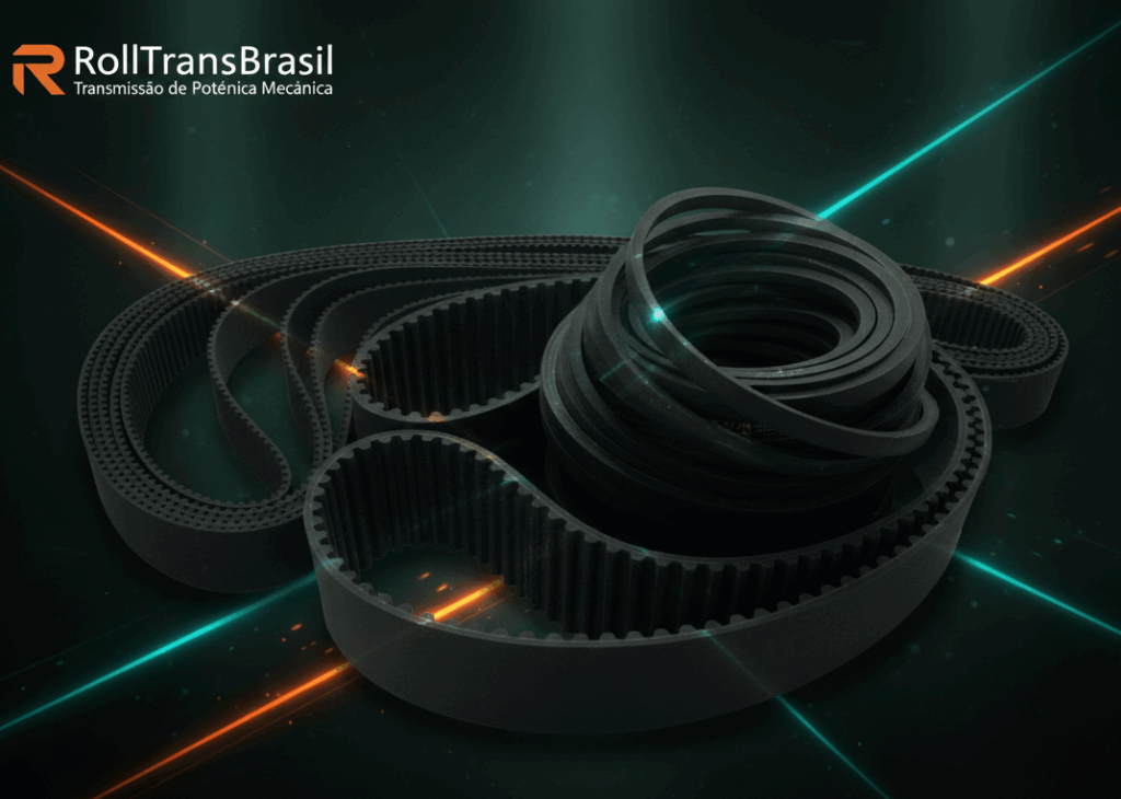 Correias industriais desenvolvidas para suportar altas cargas e ambientes rigorosos.